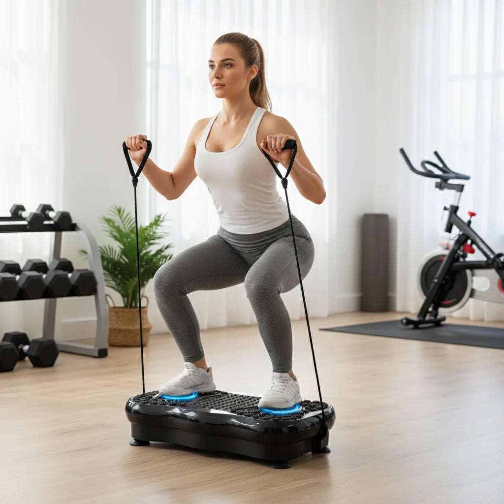 VibeFit Pro uses whole-body vibration to stimulate muscle contractions at a higher frequency than traditional exercises, leading to more efficient muscle activation and calorie burn. This means you can achieve significant results in less time, making your fitness journey more effective and enjoyable.